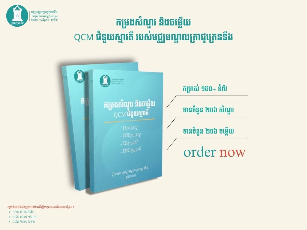 «កម្រងសំណួរ និងចម្លើយ QCM ជំនួយស្មារតី» របស់មជ្ឈមណ្ឌលត្រាជូត្រេននីងដែលទទួលបានការចាប់អារម្មណ៍និងជាវជាច្រើន…