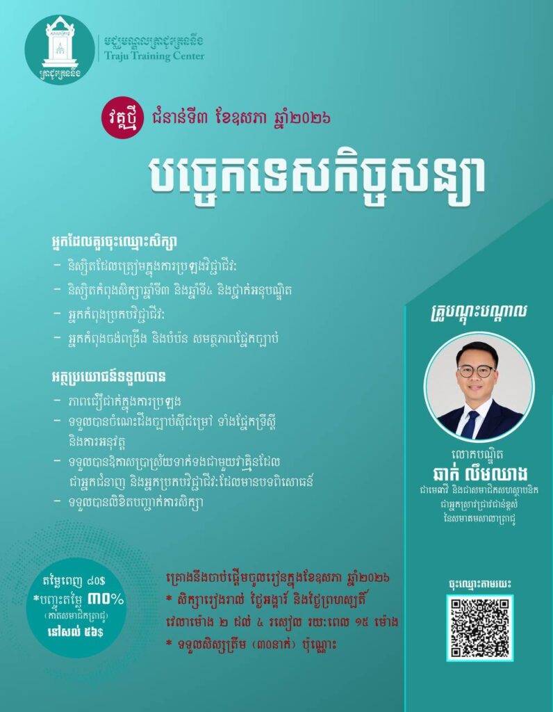 ត្រាជូត្រេននីង គ្រោងនឹងចាប់ផ្ដើមវគ្គសិក្សាស្ដីពី«បច្ចេកទេសកិច្ចសន្យា» ដោយគ្រូបណ្ដុះបណ្ដាល បណ្ឌិត ឆាក់…